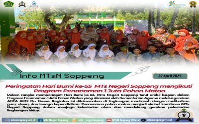 Selasa, 22 April 2025 seluruh warga MTsN Soppeng bersama Pihak setempat turut serta dalam sukseskan Program Kementerian Agama "Menanam Sejuta Pohon Matoa"