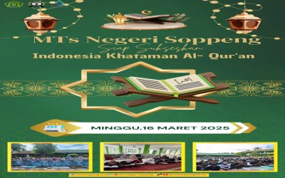 Soppeng, 16 Maret 2025 – Dalam rangka memperingati Nuzulul Quran, MTs Negeri Soppeng turut berpartisipasi dalam program Rekor MURI (Museum Rekor Dunia Indonesia) yang diadakan serentak di seluruh Indonesia, yaitu Indonesia Khataman Al-Quran.