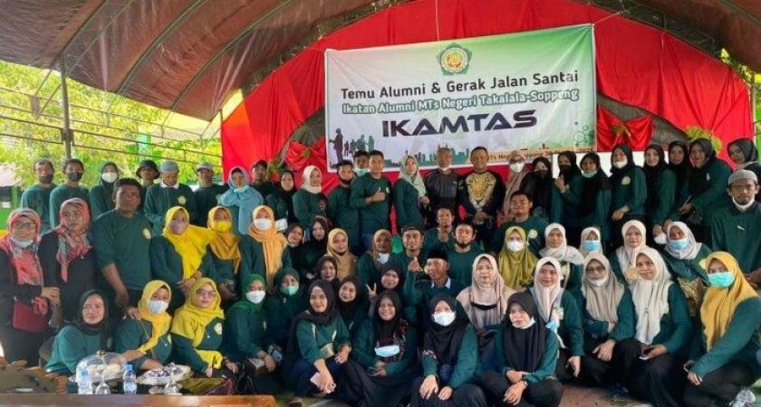 Ikatan Alumni MTs Negeri Takalala - Sopppeng (Ikamtas) gelar temu alumni dan gerak jalan santai, Sabtu (30/10/2021). Para peserta gerak jalan santai mulai star di depan MTsN Soppeng menuju pasar Sentral Takalala hingga finis kembali MTsN Soppeng. Mereka kompak menggunakan seragam warna hijau.